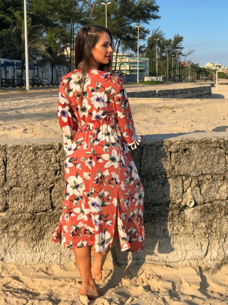 A saída de praia longa aberta é uma peça versátil e elegante, ideal para complementar seu visual à beira-mar ou na piscina. Ela possui um design kimono, que proporciona um toque sofisticado e confortável. Além disso, os detalhes na manga com cordão permitem ajustar e fechar a peça conforme sua preferência, garantindo um ajuste perfeito para diferentes biotipos.