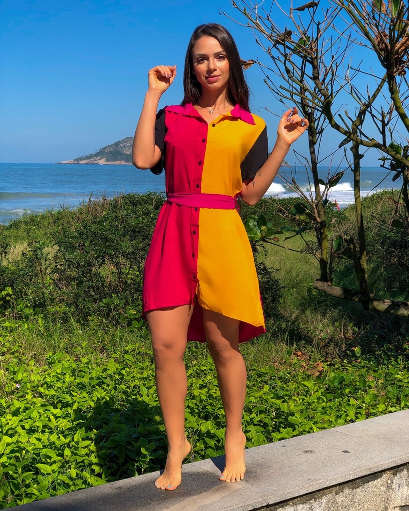 Vestido Viscose vem no modelo camiseiro com gola em V. A elegancia e o estilo desse vestido vem pelas cores dele.